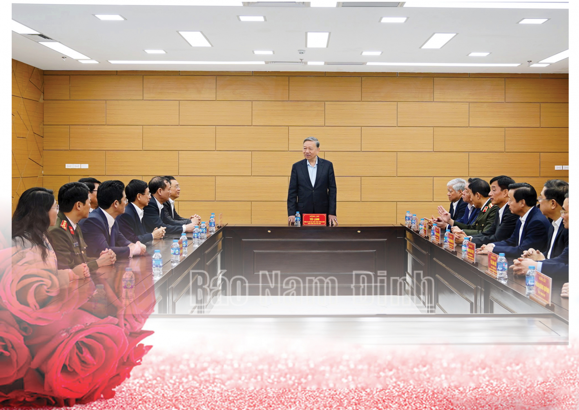 | Tổng Bí thư Tô Lâm biểu dương các đơn vị thi công sớm hoàn thành Dự án Bệnh viện Đa khoa tỉnh, là công trình thi đua lập thành tích chào mừng Đại hội đảng bộ các cấp tiến tới Đại hội Đảng bộ tỉnh Nam Định khóa XXI, nhiệm kỳ 2025-2030. |