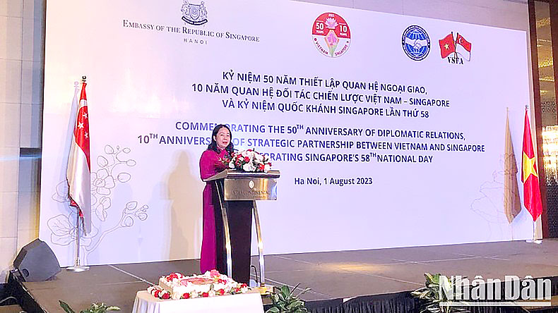 Tại buổi lễ, thay mặt lãnh đạo Đảng, Nhà nước và nhân dân Việt Nam, Phó Chủ tịch nước Võ Thị Ánh Xuân gửi tới Chính phủ và nhân dân Singapore lời chúc mừng nhân dịp kỷ niệm các dấu mốc quan trọng trong quan hệ hai nước.