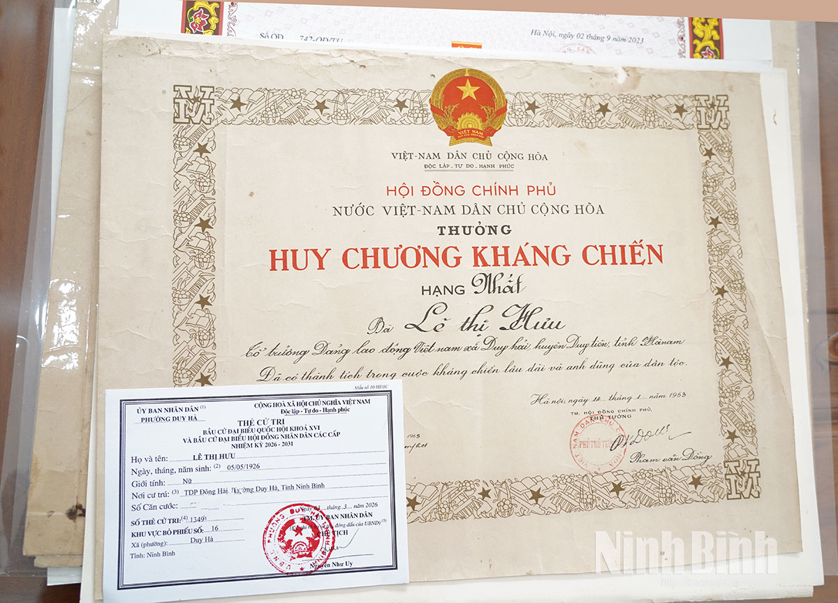 Ở tuổi tròn 100, cụ bà Lê Thị Hưu, sinh năm 1926, đảng viên 75 năm tuổi Đảng, hiện sinh sống tại tổ dân phố Đông Hải, phường Duy Hà vẫn còn khá minh mẫn. Cụ vẫn thường xuyên kể cho con cháu nghe về truyền thống cách mạng của gia đình, đặc biệt là ký ức về những dấu mốc lịch sử trọng đại của đất nước mà cụ đã trải qua.