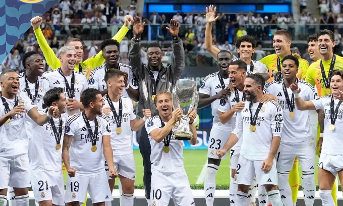 Dàn sao trẻ tỏa sáng, nhưng cầu thủ đầu tiên nâng Siêu Cup châu Âu 2024 cho Real lại là lão tướng 39 tuổi Luka Modric. Chiến thắng trước Atalanta còn giúp CLB Hoàng gia lập kỷ lục sáu lần đoạt Siêu Cup, vượt qua thành tích của Milan và Barca. Và màn trình diễn ở Warsaw sẽ giúp Real tiếp tục là ứng viên vô địch ở mọi đấu trường họ sẽ tham dự mùa 2024-2025.