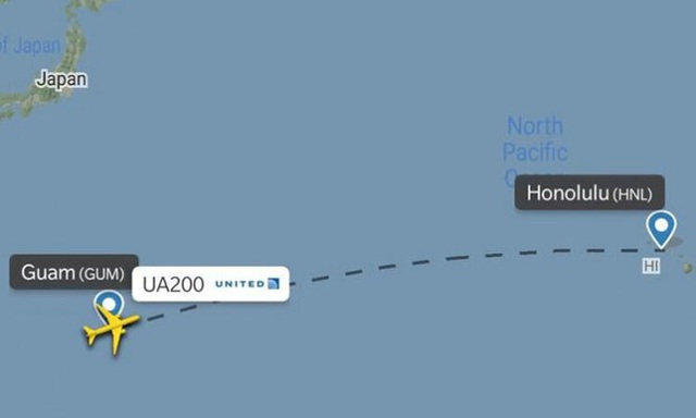 Một chuyến bay khác cũng mang số hiệu UA200, cất cánh từ đảo Guam (thuộc Mỹ) lúc 8h15 phút ngày 1/1/2021, hạ cánh xuống sân bay ở Hawaii (Mỹ) lúc 19h20 ngày 31/12/2020.