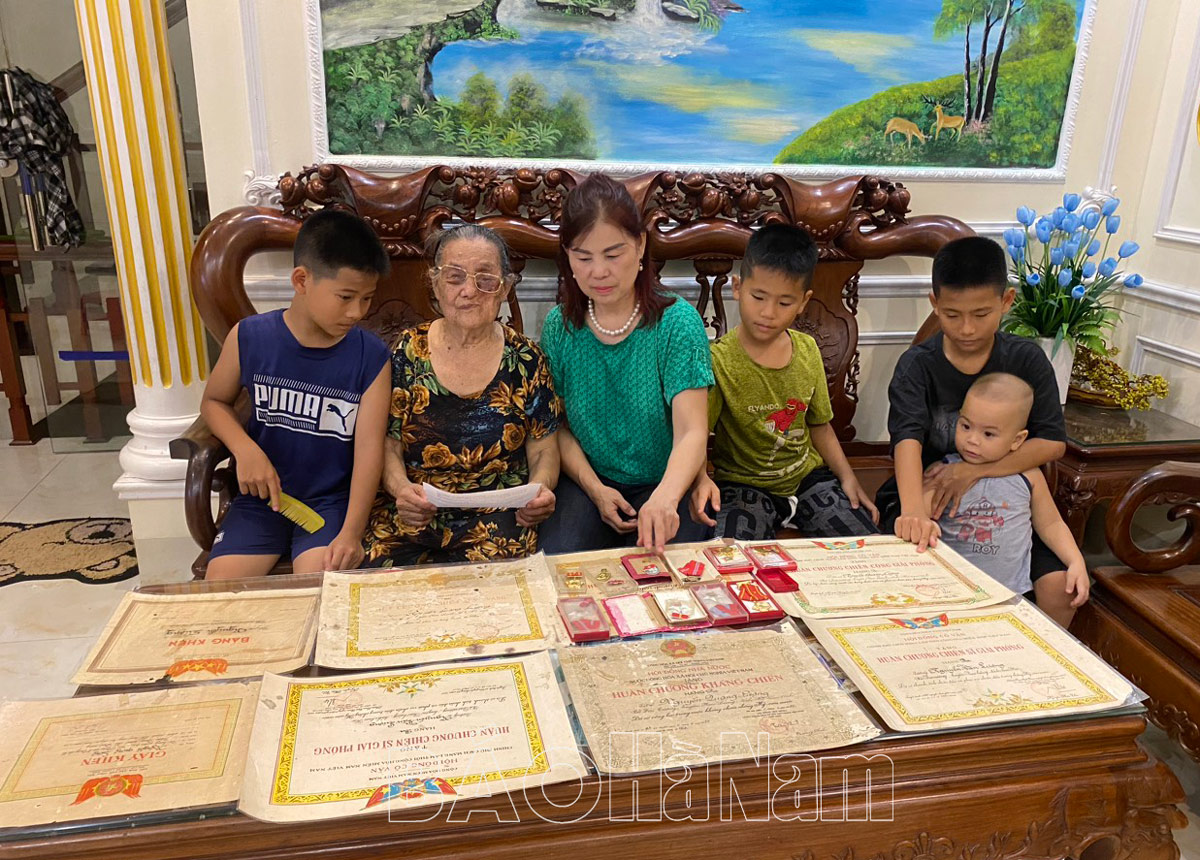 … Tôi tìm gặp người gửi lá thư này, con gái thứ 2 của liệt sỹ Nguyễn Quang Lượng là bà Nguyễn Thị Oanh, sinh 1968, đang ở thôn Tùng Quan, xã Đại Cương. Trong ngôi nhà khang trang, rộng rãi, tiếng trẻ ríu rít nô đùa, bà Oanh giới thiệu là các cháu nội, ngoại của mình. Cùng ở với bà còn có mẹ già – vợ liệt sỹ Nguyễn Quang Lượng, năm nay ngoài 80 tuổi.