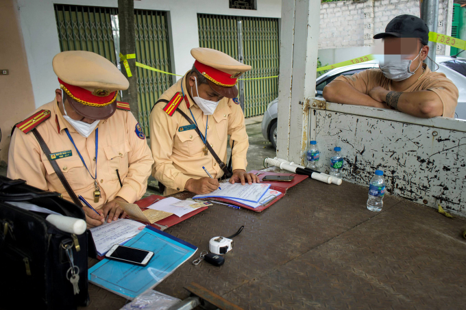 Cảnh sát giao thông đang xử lý người vi phạm ở Hà Nội. Ảnh: Gia Chính
