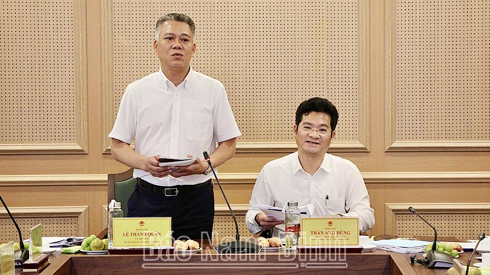 Tại cuộc họp, đồng chí Phó Chủ tịch Thường trực UBND tỉnh Trần Anh Dũng đã báo cáo tóm tắt Đề án thành lập KKT Ninh Cơ. Theo đó, KKT Ninh Cơ đã được Chính phủ bổ sung vào danh mục KKT biển của cả nước tại các Quyết định số 1453/QĐ-TTg ngày 24/9/2020 và Quyết định số 326/QĐ-TTg ngày 9/3/2022 của Thủ tướng Chính phủ về chỉ tiêu kế hoạch sử dụng đất quốc gia đến năm 2030, với chỉ tiêu đất dành cho KKT Ninh Cơ là 13.950ha nằm trên địa bàn 2 huyện Nghĩa Hưng, Hải Hậu. KKT Ninh Cơ được đánh giá là vùng đất có nhiều điều kiện thuận lợi của tỉnh Nam Định, có khả năng phát triển các ngành kinh tế gắn với các lợi thế, tiềm năng từ biển như: Cảng biển, sản xuất thép xanh, vật liệu xây dựng, chế tạo cơ khí; phát triển các ngành công nghiệp năng lượng sạch (điện khí, điện gió); tổng kho LNG, tổng kho xăng dầu, logistics, cảng cạn, dệt may; nuôi trồng và chế biến hải sản, phát triển du lịch sinh thái biển, du lịch sinh thái rừng ngập mặn. Nam Định xác định xây dựng, phát triển KKT Ninh Cơ trở thành KKT đa ngành, đa chức năng, là trọng điểm phát triển có tính đột phá, dẫn dắt cho kinh tế tỉnh Nam Định; một cực phát triển quan trọng của tiểu vùng Nam đồng bằng sông Hồng; trung tâm giao thương quốc tế gắn với các đô thị, khu công nghiệp, du lịch, thương mại, cảng biển lớn của tỉnh và tiểu vùng Nam đồng bằng sông Hồng. Các cơ chế, chính sách đối với KKT minh bạch, thông thoáng, thân thiện với doanh nghiệp, người dân; đồng thời, KKT là nơi nghiên cứu triển khai một số mô hình, dự án sản xuất mới trên địa bàn tỉnh Nam Định và cả nước. Hiện nay, nhiều nhà đầu tư lớn ở trong và ngoài nước đã và đang tìm hiểu, nghiên cứu, đề xuất được đầu tư các dự án vào trong Khu Kinh tế Ninh Cơ. Song song với lập Đề án thành lập KKT Ninh Cơ, tỉnh cũng chú trọng hoàn thiện cơ chế chính sách thu hút đầu tư vào KKT.