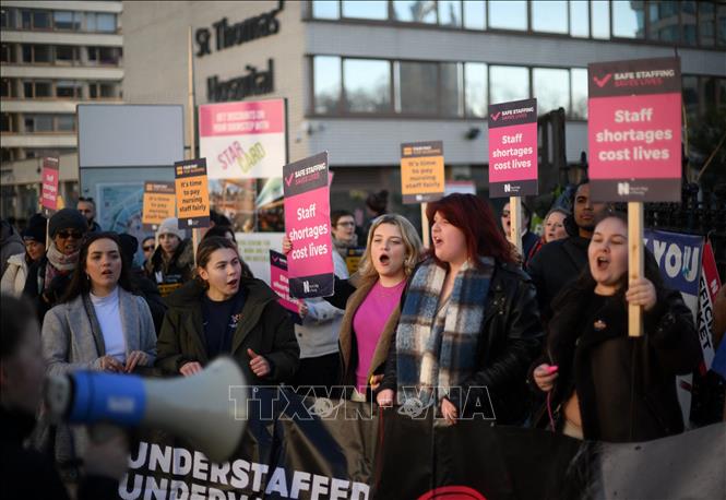 Nhân viên y tế tham gia đình công đòi tăng lương tại London, Anh, ngày 6/2/2023.