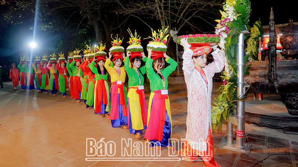 | Nghi thức dâng lễ vật tại Đền Thiên Trường. |