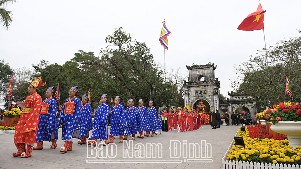 | Nghi thức rước kiệu ấn từ Đền Cố Trạch thờ Anh hùng dân tộc Trần Hưng Đạo sang Đền Thiên Trường. |