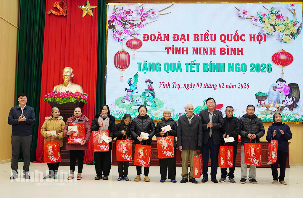 *Nhân dịp Tết Nguyên đán Bính Ngọ 2026, sáng ngày 9/2, Đoàn công tác của Đoàn đại biểu Quốc hội (ĐBQH) tỉnh do đồng chí Phạm Hùng Thắng, Tỉnh ủy viên, Phó Trưởng Đoàn ĐBQH tỉnh làm Trưởng đoàn đã thăm, tặng quà các hộ gia đình thương binh, người có công, các hộ gia đình chính sách và các đối tượng bảo trợ xã hội tại xã Vĩnh Trụ.