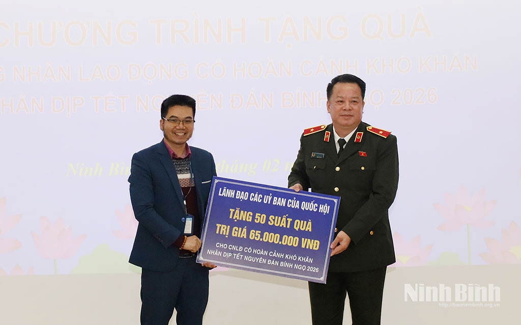 Phát biểu tại buổi trao tặng quà, Thiếu tướng Nguyễn Quốc Hùng, Phó Chủ nhiệm Ủy ban Quốc phòng - An ninh và Đối ngoại của Quốc gửi lời thăm hỏi động viên và chúc Tết đến Ban Giám đốc, đoàn viên, người lao động Công ty. Đồng thời mong muốn Công ty tiếp tục duy trì sản xuất kinh doanh, tạo nhiều việc làm và ổn định thu nhập cho công nhân, người lao động, góp phần vào sự phát triển chung của tỉnh Ninh Bình. Đồng chí nhấn mạnh, việc chăm lo Tết cho người lao động cần được thực hiện đúng đối tượng, bảo đảm kịp thời, công khai. Qua đó, không chỉ hỗ trợ về vật chất mà còn tạo động lực tinh thần, củng cố niềm tin của người lao động đối với tổ chức Công đoàn.