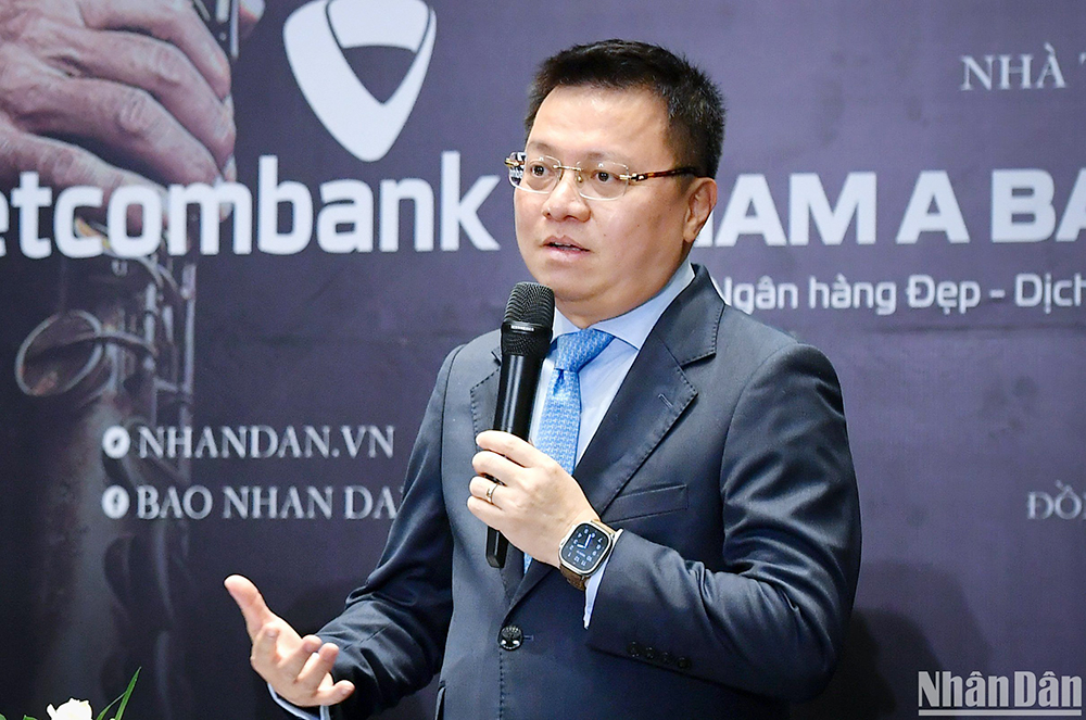 | Đồng chí Lê Quốc Minh, Tổng Biên tập Báo Nhân Dân, Phó trưởng Ban Tuyên giáo Trung ương, Chủ tịch Hội Nhà báo Việt Nam tại buổi họp báo. |
