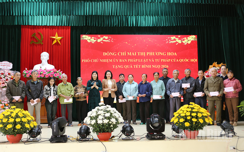 Đồng chí Phó Chủ nhiệm Ủy ban Pháp luật và Tư pháp của Quốc hội Mai Thị Phương Hoa đề nghị các cấp ủy Đảng, chính quyền các địa phương tiếp tục quan tâm tạo điều kiện hỗ trợ, giúp đỡ các gia đình còn khó khăn, các đối tượng bảo trợ xã hội, nhất là các gia đình gặp biến cố lớn trong đời sống vượt qua khó khăn, vươn lên trong cuộc sống. Nhân dịp chuẩn bị đón xuân mới Bính Ngọ 2026, đồng chí Phó Chủ nhiệm Ủy ban Pháp luật và Tư pháp của Quốc hội Mai Thị Phương Hoa trân trọng gửi tới các gia đình chính sách, người có công với cách mạng, các đối tượng bảo trợ xã hội đón năm mới an vui, thành công và hạnh phúc; chúc Đảng bộ, chính quyền các xã năm mới đoàn kết, vững mạnh, phát triển, tiếp tục đạt nhiều kết quả tích cực trong phát triển kinh tế - xã hội, góp phần nâng cao đời sống Nhân dân.