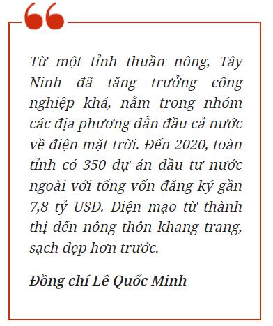 Sang giai đoạn 2016-2020, GRDP của tỉnh đạt 7,2%, cao hơn mức của cả nước. GRDP bình quân đầu người năm 2020 đạt 3.135 USD, cao gấp 1,5 lần so năm 2015. Từ một tỉnh thuần nông, Tây Ninh đã tăng trưởng công nghiệp khá, nằm trong nhóm các địa phương dẫn đầu cả nước về điện mặt trời.