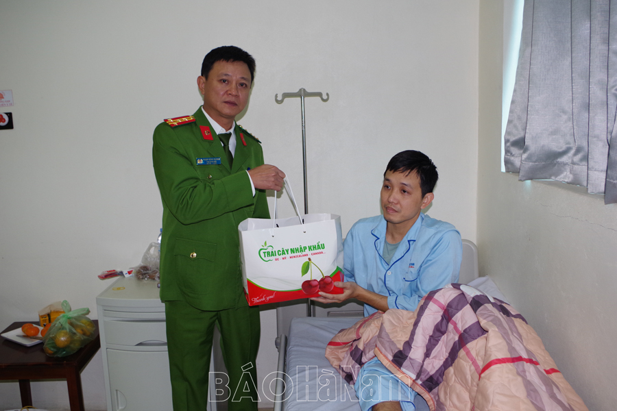Thay mặt Đảng uỷ, lãnh đạo Công an tỉnh, Đại tá Phạm Hùng Dương, Uỷ viên Ban Thường vụ Đảng uỷ, Phó Giám đốc Công an tỉnh đã ân cần thăm hỏi, gửi lời động viên và trao quà cho Thiếu tá Nguyễn Duy Chinh, Phó Đội trưởng và Thượng uý Nguyễn Văn Hải, cán bộ Đội Cảnh sát giao thông - Trật tự, Công an thị xã Duy Tiên. Đồng chí Phó Giám đốc Công an tỉnh mong muốn 02 đồng chí yên tâm điều trị vết thương, nhanh chóng bình phục. Đồng thời chỉ đạo Công an thị xã Duy Tiên phối hợp với các đơn vị chức năng Công an tỉnh nhanh chóng điều tra, xử lý nghiêm đối tượng đã chống đối, làm bị thương cán bộ, chiến sỹ trong khi làm nhiệm vụ.
