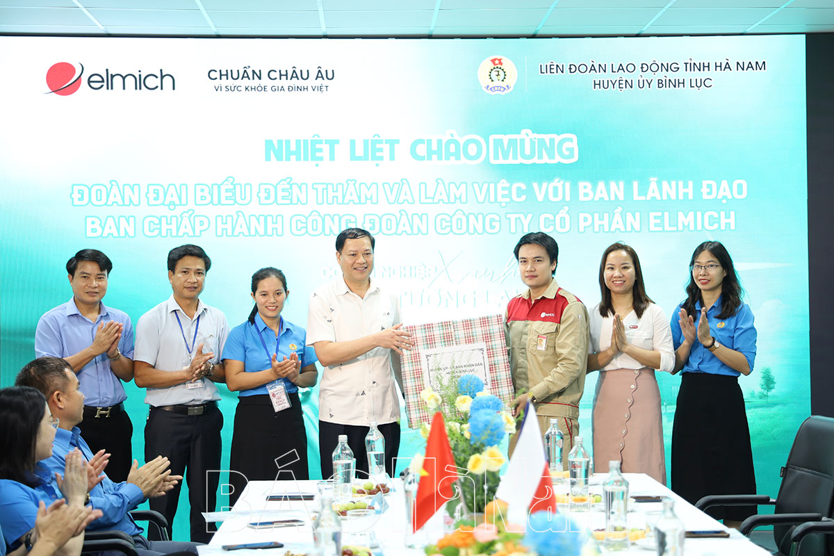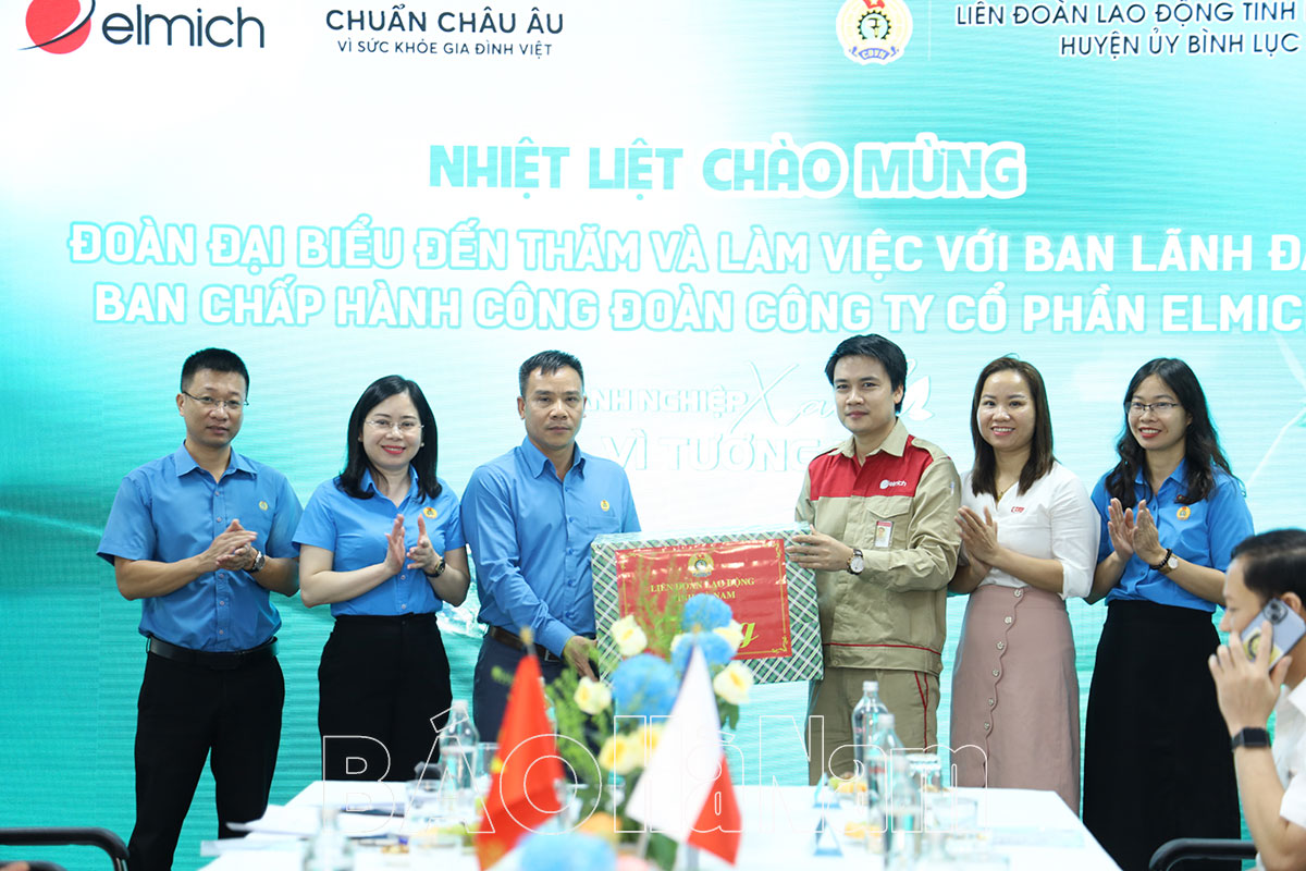 Lãnh đạo LĐLĐ tỉnh tặng quà Công ty cổ phần Elmich.Lãnh đạo Huyện ủy Bình Lục tặng quà Công ty cổ phần Elmich.