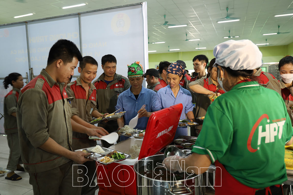 Trong khuôn khổ buổi làm việc, các đại biểu đã dự Chương trình "Nâng cao chất lượng bữa ăn ca - Vì sức khỏe NLĐ". Đây là hoạt động thiết thực nhằm thúc đẩy sự quan tâm hơn nữa của doanh nghiệp đối với việc quan tâm nâng cao chất lượng bữa ăn ca, bảo đảm sức khỏe cho NLĐ.