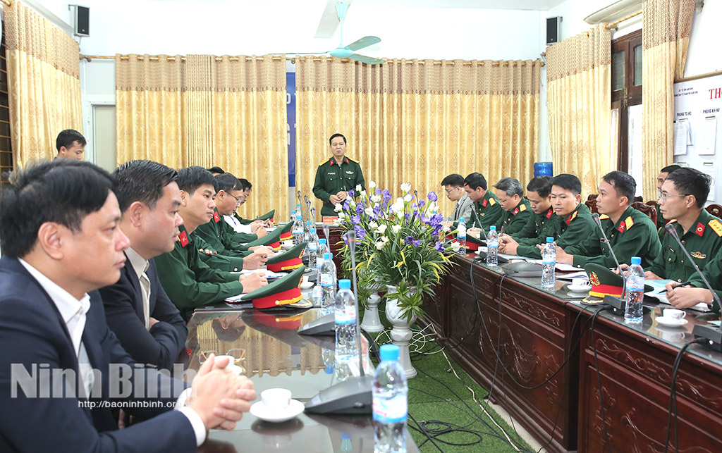 Đại tá Nguyễn Bá Thịnh, Phó Tham mưu trưởng Quân khu 3 phát biểu tại buổi kiểm tra công tác tuyển chọn, gọi công dân nhập ngũ tại địa bàn Ban Chỉ huy PTKV 3-Đông A.