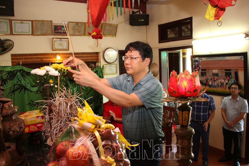 Thay mặt cán bộ, công chức, người lao động đơn vị, đồng chí Lê Đức Phúc, Phó Giám đốc Sở KH&ĐT đã thắp hương tưởng nhớ hai liệt sỹ Vũ Văn Khương và Vũ Văn Hướng, là hai con trai của mẹ Vũ Thị Đam, hy sinh trong kháng chiến chống Mỹ cứu nước.