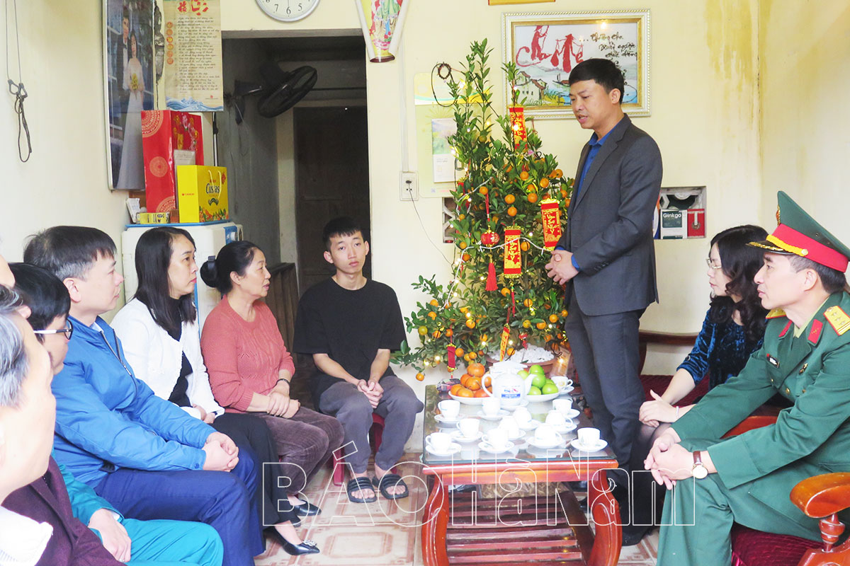 Tại các gia đình đến thăm, các đồng chí lãnh đạo thành phố đã quan tâm thăm hỏi sức khoẻ, hoàn cảnh, gửi tới các gia đình lời chúc mừng năm mới tốt đẹp nhất. Biểu dương các thanh niên trong thời gian qua đã nghiêm chỉnh chấp hành quy định trong công tác tuyển quân, tự nguyện tự giác thực hiện lệnh gọi của Hội đồng Nghĩa vụ quân sự, lãnh đạo thành phố mong rằng gia đình các thanh niên trong diện sẵn sàng nhập ngũ tiếp tục động viên con em giữ gìn sức khoẻ, nỗ lực cố gắng, phát huy tốt truyền thống quê hương, yên tâm lên đường làm nhiệm vụ. Đảm bảo tuyệt đối an toàn trong dịp Tết nguyên đán.