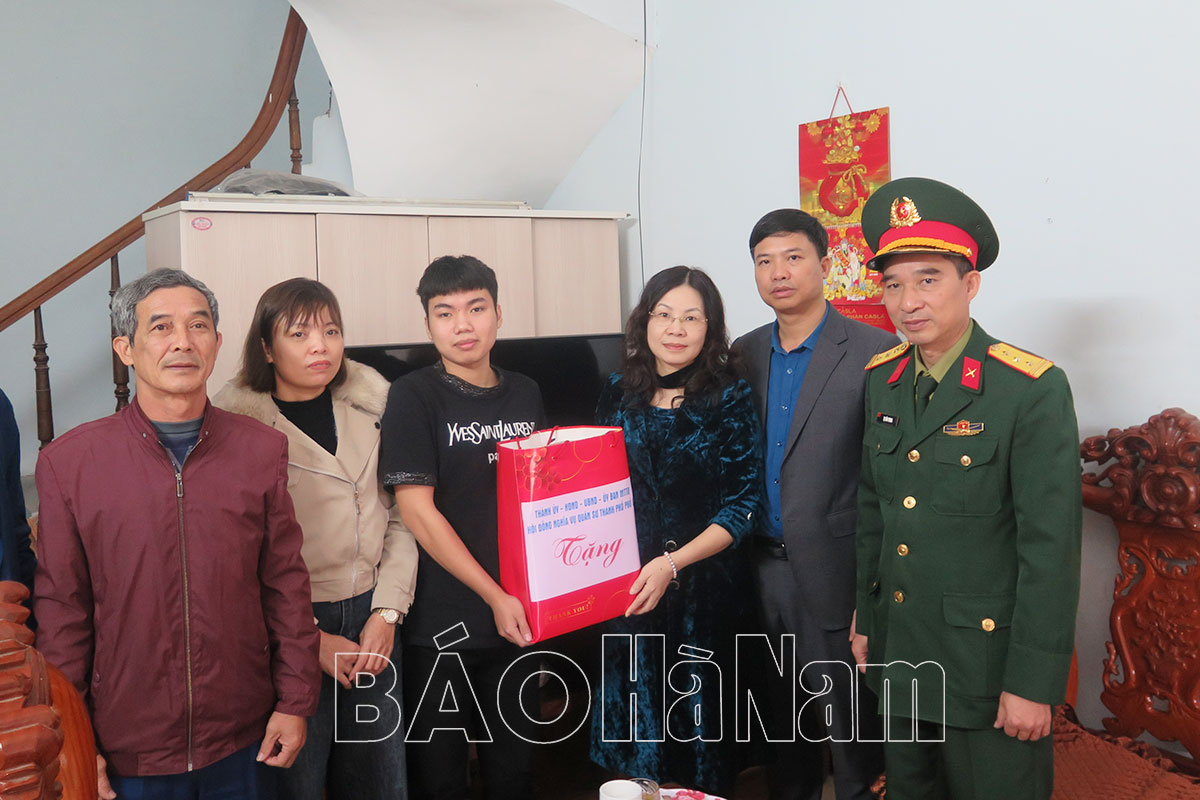 Nhân dịp Tết cổ truyền của dân tộc, sáng 7/2 (tức ngày 28 Tết), đoàn cán bộ lãnh đạo Thành uỷ, UBND thành phố Phủ Lý và Ban CHQS thành phố Phủ Lý đã tới thăm, tặng quà, động viên một số thanh niên sẵn sàng nhập ngũ có hoàn cảnh khó khăn trên địa bàn.