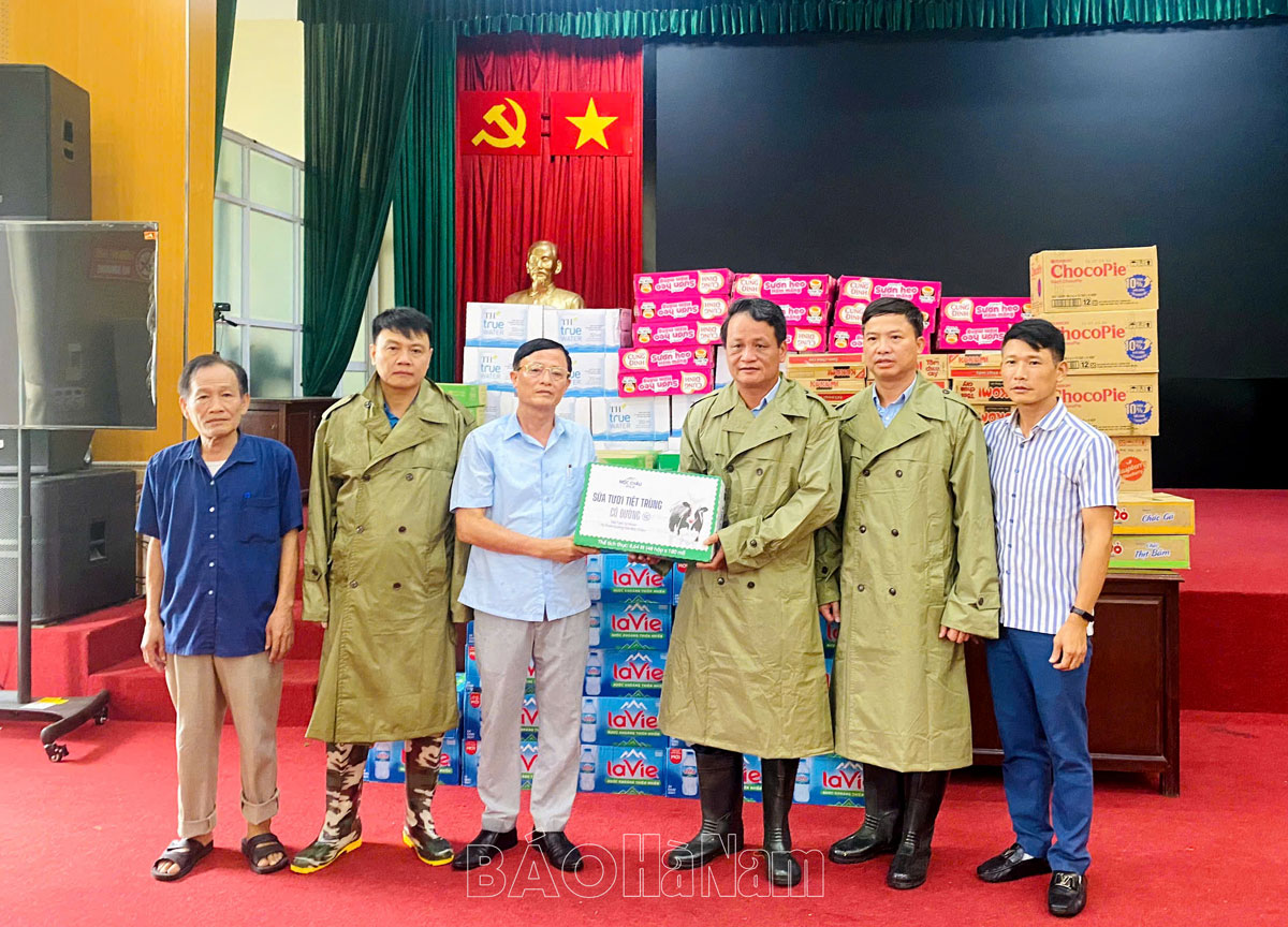 Nhân dịp này, lãnh đạo Thành uỷ, UBND thành phố Phủ Lý cũng đã trao tặng xã Kim Bình 109 thùng quà; tặng phường Châu Sơn 147 thùng quà; tặng phường Thanh Tuyền 90 thùng quà (gồm: nước, sữa, mỳ tôm, bánh, cháo, lương khô…); lãnh đạo Thành ủy, UBND thành phố Phủ Lý đã thăm hỏi động viên và trao 31 suất quà (mỗi suất trị giá 500 nghìn đồng tiền mặt và 1 túi quà) tặng 31 hộ dân bị ảnh hưởng ngập lụt của 2 xã Phù Vân, Kim Bình phải di dời về trường tiểu học, nhà văn hóa của địa phương để tránh ngập.