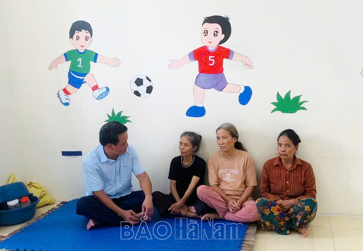 Đồng chí Bí thư Thành ủy Phủ Lý thăm hỏi, động viên các hộ dân phải di dời tới Trường Tiểu học xã Kim Bình.