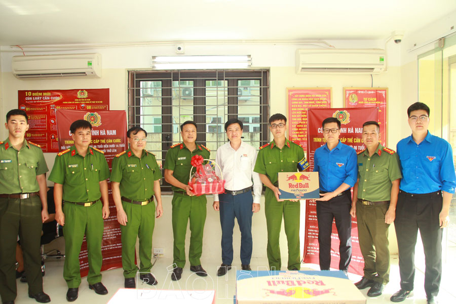 Tỉnh đoàn Hà Nam vừa tổ chức đi thăm, tặng quà động viên cán bộ, chiến sĩ Công an tỉnh đang thực hiện nhiệm vụ cấp thẻ căn cước cho công dân trên địa bàn tại Trung tâm Hành chính công tỉnh.