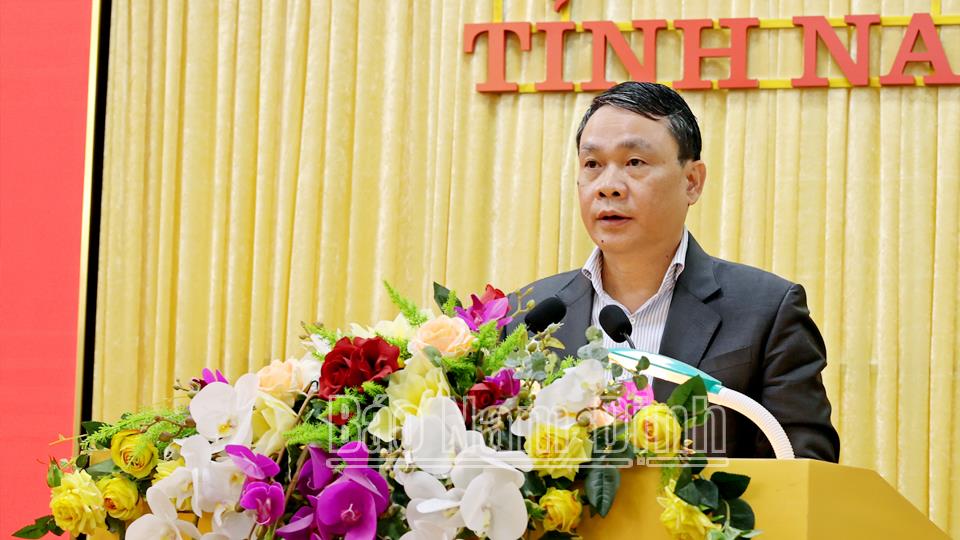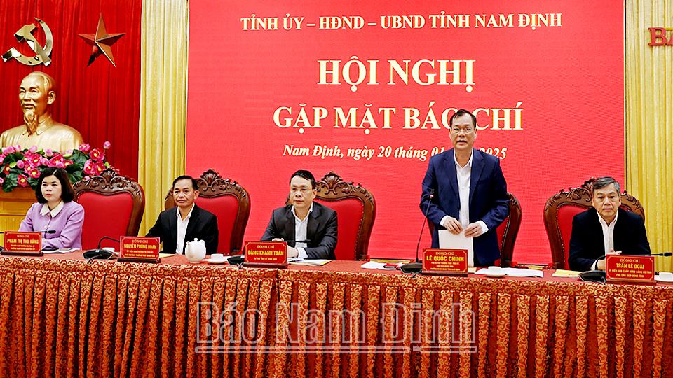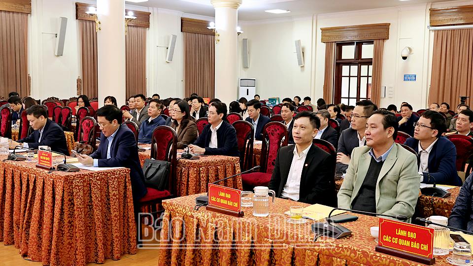 Tại hội nghị, lãnh đạo tỉnh đã thông tin đến cán bộ, phóng viên các cơ quan báo chí khái quát về kết quả, thành tựu phát triển kinh tế-xã hội của tỉnh năm 2024. Theo đó, mặc dù phải đối mặt với nhiều khó khăn, thách thức, nhất là cơn bão số 3 và mưa lũ đã ảnh hưởng không nhỏ đến sản xuất, kinh doanh và đời sống của nhân dân. Song với tinh thần đoàn kết, quyết tâm cao, nỗ lực lớn và bằng các giải pháp đồng bộ, sáng tạo, linh hoạt, tỉnh Nam Định đã từng bước khắc phục khó khăn, vượt qua thách thức, hoàn thành tốt các mục tiêu, nhiệm vụ chính trị đã đề ra. Nổi bật là công tác xây dựng, chỉnh đốn Đảng và hệ thống chính trị tiếp tục được đẩy mạnh. Công tác chuẩn bị tổ chức đại hội đảng bộ các cấp, Đại hội Đảng bộ tỉnh lần thứ XXI, nhiệm kỳ 2025-2030 được triển khai kịp thời, sát với tình hình thực tế. Việc tổng kết thực hiện Nghị quyết số 18-NQ/TW của BCH Trung ương (khóa XII) được chỉ đạo quyết liệt theo đúng kế hoạch đề ra; xây dựng các phương án, đề án sắp xếp, tinh gọn tổ chức bộ máy trên địa bàn tỉnh theo đúng định hướng chỉ đạo của Trung ương và của tỉnh. Công tác sắp xếp đơn vị hành chính cấp huyện, cấp xã giai đoạn 2023-2025 được triển khai thực hiện quyết liệt, bài bản, khoa học, vượt tiến độ đề ra. Nam Định là tỉnh đầu tiên trong cả nước hoàn thành sắp xếp đơn vị hành chính cấp huyện, cấp xã với số lượng đơn vị sắp xếp lớn; giảm 1 huyện, 51 đơn vị hành chính cấp xã.