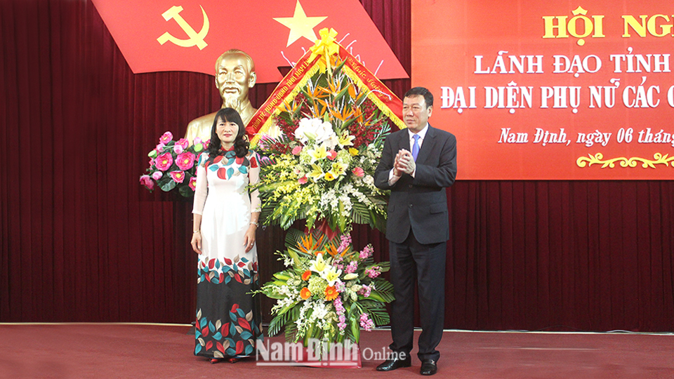 Phát biểu tại hội nghị, đồng chí Bí thư Tỉnh ủy đã thông tin đến toàn thể chị em về kết quả thực hiện nhiệm vụ phát triển kinh tế - xã hội của tỉnh trong năm 2018, định hướng phát triển năm 2019; ghi nhận, biểu dương, đánh giá cao kết quả đạt được của các cấp Hội Phụ nữ đã góp phần quan trọng vào thành tích chung của tỉnh. Đồng chí đề nghị, thời gian tới, các cấp Hội cần bám sát tinh thần chỉ đạo của tỉnh, cụ thể hóa chương trình, kế hoạch hoạt động, trong đó tập trung vào các nhiệm vụ trọng tâm: Tiếp tục đẩy mạnh thực hiện có hiệu quả cuộc vận động “Phụ nữ Nam Định chung sức tham gia xây dựng nông thôn mới”, nhất là giữ gìn vệ sinh và làm đẹp môi trường. Tiếp tục triển khai tích cực các hoạt động sáng tạo, khởi nghiệp của phụ nữ; hỗ trợ chị em vay vốn phát triển sản xuất. Phát huy vai trò của các cấp Hội trong công tác xây dựng Đảng và hệ thống chính trị; nhất là công tác sắp xếp tổ chức bộ máy theo tinh thần Nghị quyết Trung ương 6, khóa XII của Đảng. Tích cực tham mưu cho cấp ủy các cấp trong việc chuẩn bị nhân sự nữ cho đại hội Đảng các cấp nhiệm kỳ 2020-2025. Tiếp tục củng cố, nâng cao chất lượng xây dựng tổ chức Hội, tăng cường tập hợp, quản lý hội viên, nhất là hội viên là phụ nữ có đạo, phụ nữ đi làm ăn xa. Thường xuyên bám sát cơ sở, nắm chắc tình hình tư tưởng, đời sống của cán bộ, hội viên và nhân dân để kịp thời tham mưu cho cấp ủy, chính quyền lãnh đạo, chỉ đạo và có biện pháp giải quyết ngay từ cơ sở.