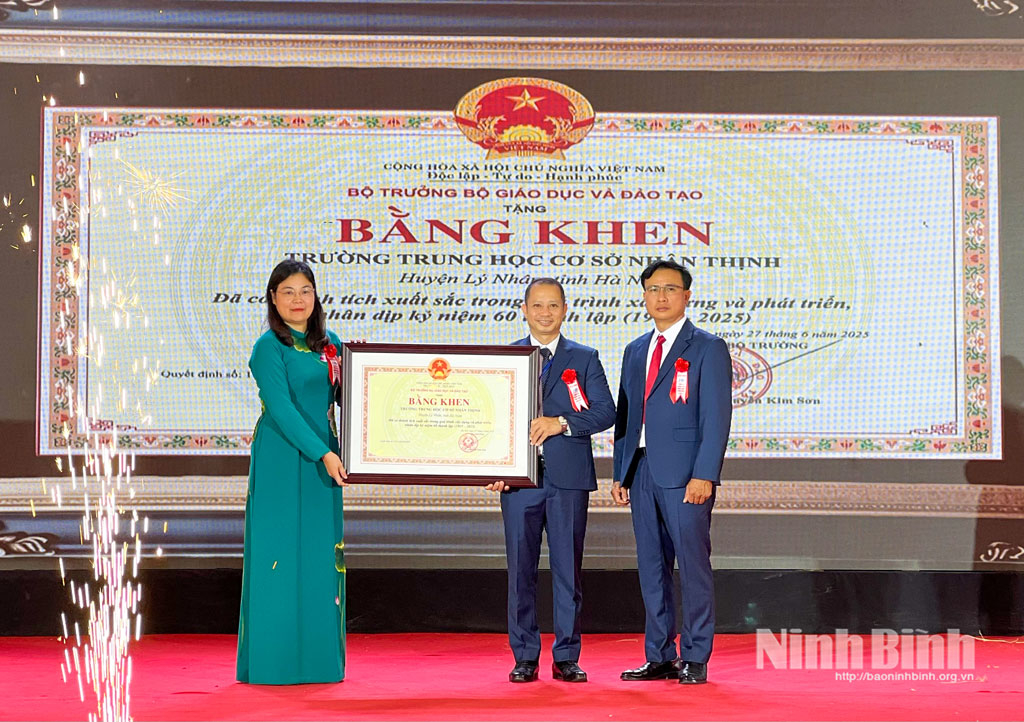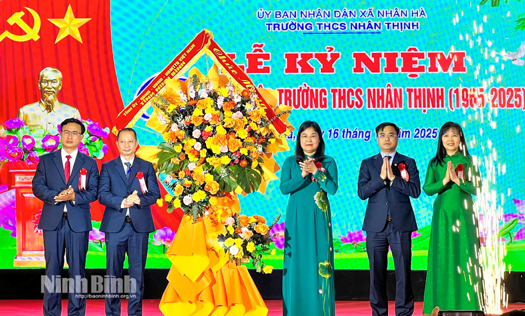 Phát biểu tại lễ kỷ niệm, đồng chí Hà Lan Anh, Tỉnh ủy viên, Phó Chủ tịch UBND tỉnh đã gửi lời chúc mừng và ghi nhận những nỗ lực, cống hiến của các thế hệ thầy, cô giáo và học sinh Trường THCS Nhân Thịnh trong suốt thời gian qua. Đồng chí nhấn mạnh: những kết quả nhà trường đạt được không chỉ góp phần khẳng định vị thế của một cơ sở giáo dục có bề dày 60 năm truyền thống, mà còn đóng góp thiết thực vào thành tựu chung của ngành giáo dục của tỉnh.