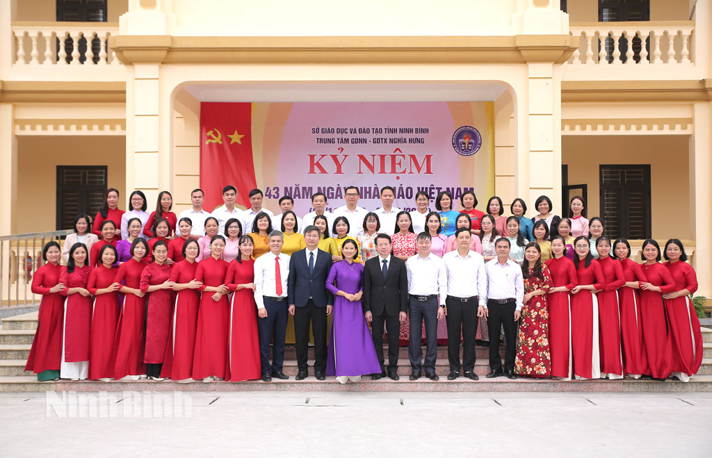 Phát biểu tại buổi lễ, đồng chí Phó Trưởng Đoàn ĐBQH tỉnh Nguyễn Hải Dũng chúc mừng đội ngũ cán bộ, giáo viên, nhân viên của Trung tâm nhân Ngày Nhà giáo Việt Nam 20/11. Đồng chí ghi nhận những nỗ lực vượt khó, tinh thần trách nhiệm và sự tận tụy của tập thể sư phạm Trung tâm trong việc duy trì chất lượng giáo dục, nhất là tại mô hình GDNN - GDTX vốn có nhiều đặc thù. Đồng chí nhấn mạnh: Nghị quyết số 71-NQ/TW ngày 22/8/2025 của Bộ Chính trị về đột phá phát triển giáo dục và đào tạo là định hướng quan trọng để các cơ sở giáo dục tiếp tục hoàn thiện mô hình dạy học. Trung tâm GDNN - GDTX Nghĩa Hưng cần chủ động triển khai các nội dung của Nghị quyết, chú trọng đổi mới phương pháp giảng dạy, gắn đào tạo văn hóa với nghề nghiệp, đẩy mạnh chuyển đổi số, xây dựng môi trường giáo dục thân thiện, kỷ cương, hiệu quả. Đồng chí mong muốn đội ngũ giáo viên Trung tâm tiếp tục giữ vững phẩm chất người thầy, không ngừng nâng cao trình độ chuyên môn, góp phần đào tạo nguồn nhân lực chất lượng cho địa phương và tỉnh Ninh Bình.