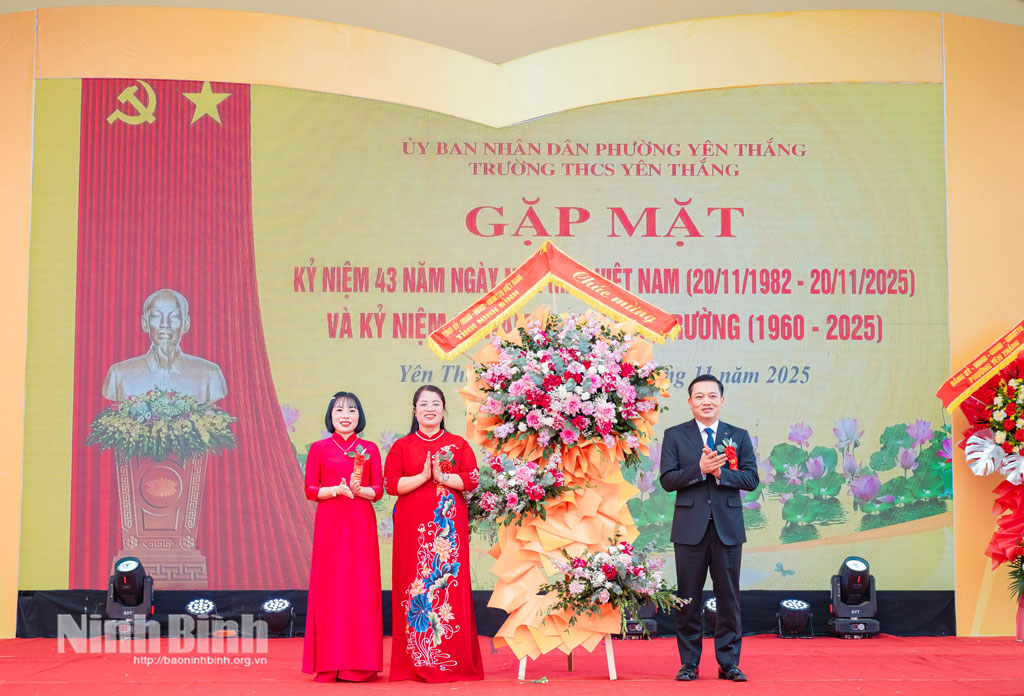 * Đoàn đại biểu của tỉnh do đồng chí Nguyễn Cao Sơn, Tỉnh ủy viên, Phó Chủ tịch UBND tỉnh làm Trưởng đoàn đã đến thăm và chúc mừng tập thể cán bộ, giáo viên, nhân viên Trường THCS Yên Thắng (phường Yên Thắng) nhân kỷ niệm 65 năm thành lập trường và kỷ niệm 43 năm Ngày Nhà giáo Việt Nam. Cùng dự buổi lễ có đại diện lãnh đạo một số sở, ngành của tỉnh, lãnh đạo phường Yên Thắng, cùng các thế hệ nhà giáo và đông đảo học sinh của nhà trường.