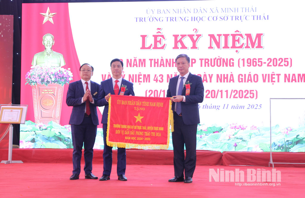 * Đoàn đại biểu của tỉnh do đồng chí Đinh Việt Dũng, Ủy viên Ban Thường vụ Tỉnh ủy, Trưởng Ban Tổ chức Tỉnh ủy làm Trưởng đoàn tới dự Lễ kỷ niệm 60 năm thành lập trường THCS Trực Thái (1965-2025) và chúc mừng cán bộ, giáo viên nhà trường nhân kỷ niệm 43 năm Ngày Nhà giáo Việt Nam. Cùng đi có lãnh đạo một số cơ quan, đơn vị, địa phương…
