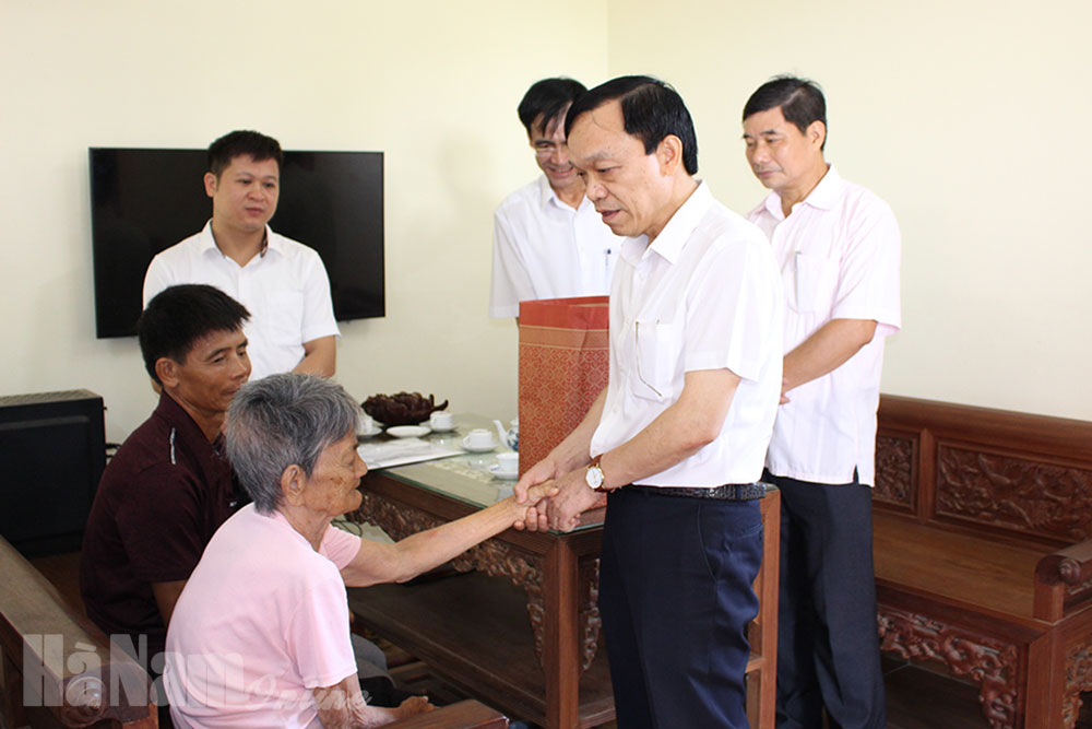* Đoàn do đồng chí Lê Hồng Quân, Ủy viên Ban Thường vụ Tỉnh ủy, Chủ nhiệm Ủy ban Kiểm tra Tỉnh ủy làm trưởng đoàn đã đến thăm, tặng quà mẹ Việt Nam anh hùng Trần Thị Sách, thương binh Lê Văn Toàn và ông Lê Quang Huy (người bị nhiễm chất độc hóa học) ở phường Thanh Châu, thành phố Phủ Lý.