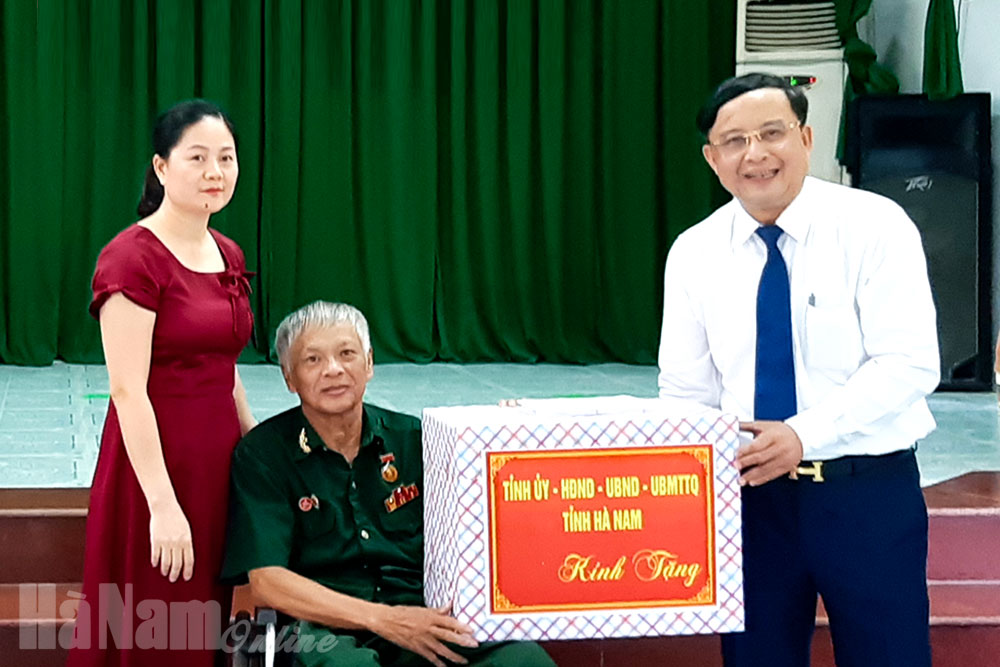Đồng chí Phó Bí thư Thường trực Tỉnh ủy, Chủ tịch HĐND tỉnh cũng đã đến thăm, tặng quà ông Nguyễn Tiến Vui, là thương binh hạng 4/4, thương tật 31%, đồng thời là đối tượng hoạt động kháng chiến bị nhiễm chất độc hóa học và bà Vũ Thị Thơm, là mẹ liệt sỹ tiêu biểu, cùng ở xã Thanh Phong.