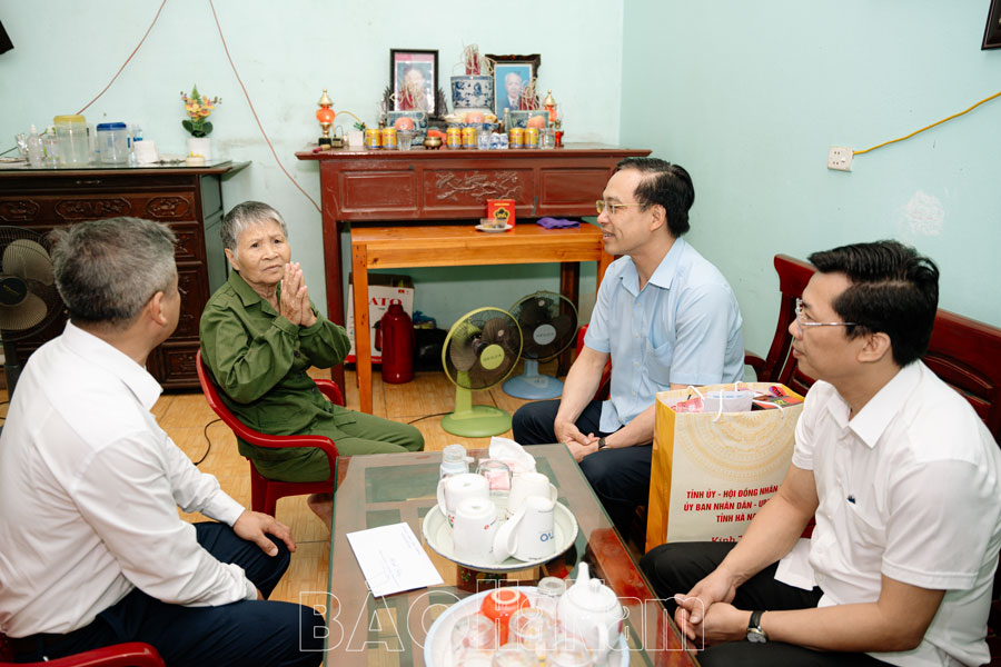 *Đoàn do đồng chí Nguyễn Anh Chức, Ủy viên BTV Tỉnh ủy, Phó Chủ tịch Thường trực UBND tỉnh làm trưởng đoàn đã đi thăm, tặng quà các thương, bệnh binh, gia đình thân nhân liệt sĩ tiêu biểu tại thành phố Phủ Lý.