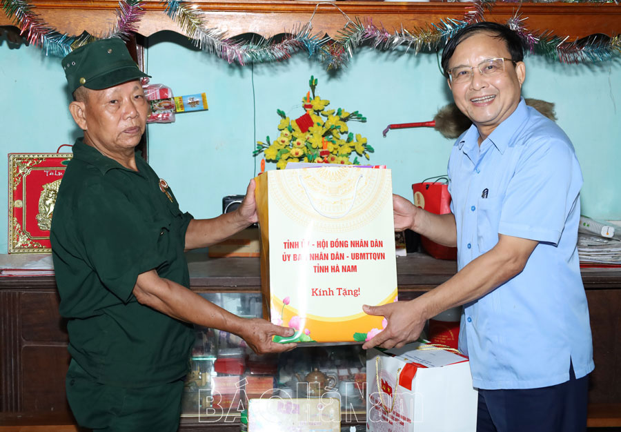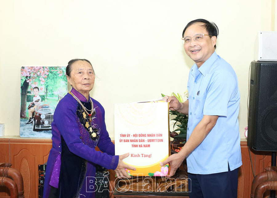 Theo đó, đồng chí Trưởng Ban Dân vận Tỉnh ủy đã đến thăm Mẹ Việt Nam anh hùng Trần Thị Tình (thôn Trần Xá, xã Nguyên Lý); thương, bệnh binh có hoàn cảnh khó khăn Chu Văn Đức (tổ dân phố Vĩnh Tiến, thị trấn Vĩnh Trụ); người tham gia kháng chiến bị nhiễm chất độc hóa học Nguyễn Văn Ngọ (thôn 1 Phú Đa, xã Công Lý).