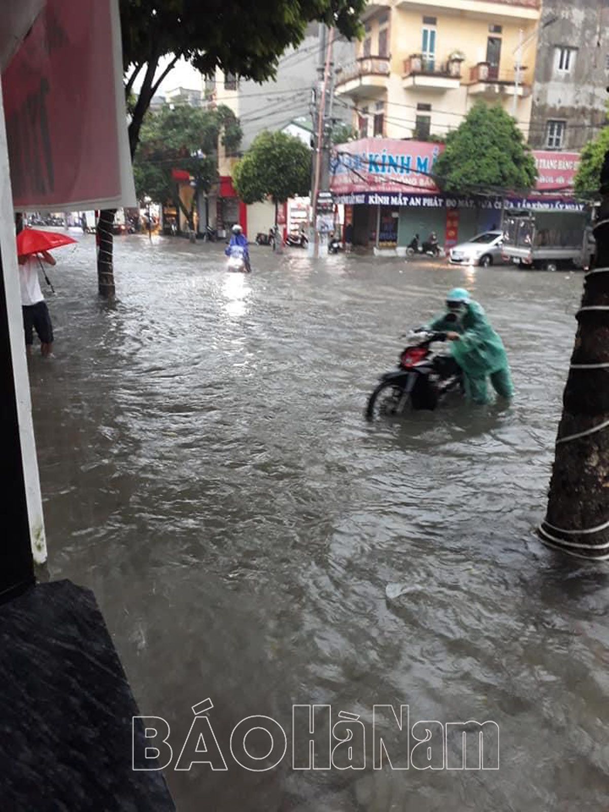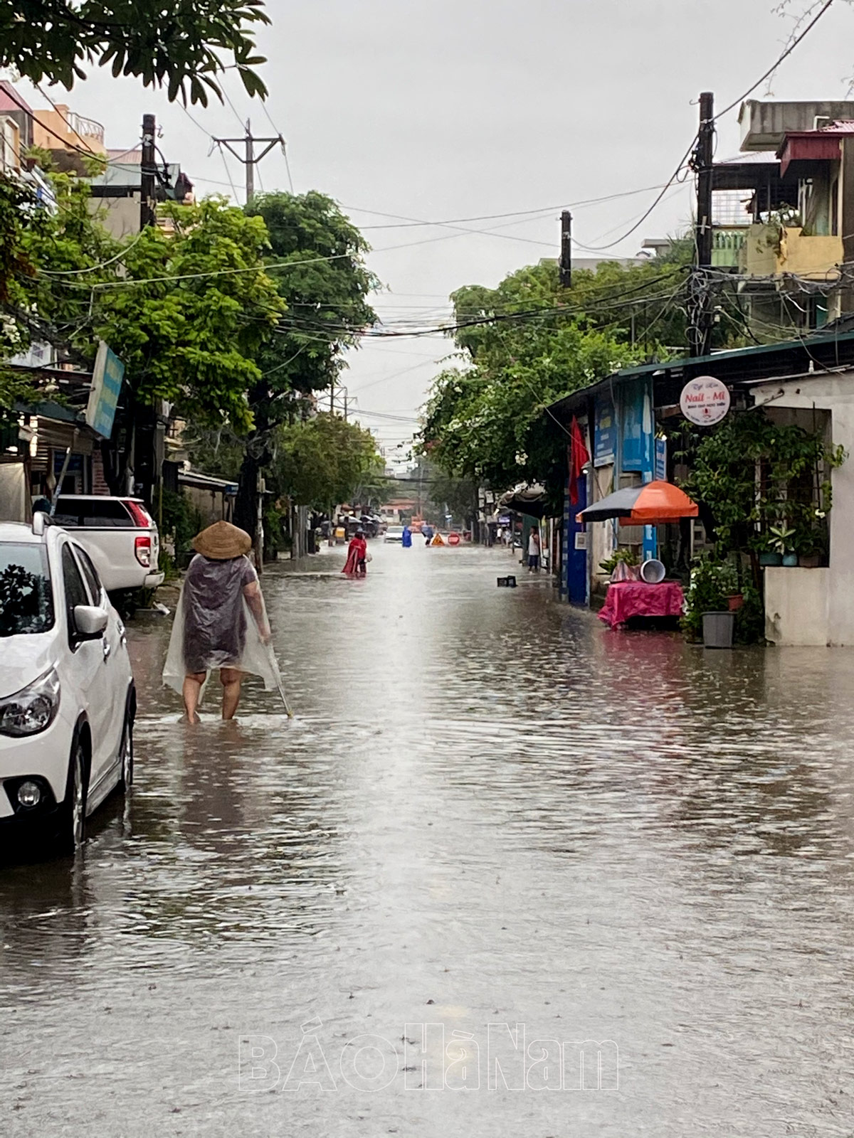 Ngay từ sáng sớm, lãnh đạo UBND thành phố Phủ Lý đã đi thị sát, kiểm tra tình hình, chỉ đạo các đơn vị chức năng tổ chức phối hợp chống lụt. Theo ông Hoàng Cao Liêm, Phó Chủ tịch UBND thành phố: “Hầu hết các tuyến phố chính đã ngập, tiêu biểu như Biên Hòa, Nguyễn Viết Xuân, Trường Chinh, Lê Duẩn, Lý Thái Tổ… Có những khu vực ngập sâu tới 50cm, ảnh hưởng rất lớn đến đời sống, sinh hoạt của nhân dân. Ngay trong sáng nay, khi lãnh đạo thành phố đi kiểm tra, nhiều tuyến phố bị ngập sâu trong nước là nơi mật độ xe cộ tham gia giao thông cao vì khá đông phụ huynh đưa con đến trường bằng ô tô nên ách tắc. Nhiều xe chết máy giữa đường do ngập nước sâu.”