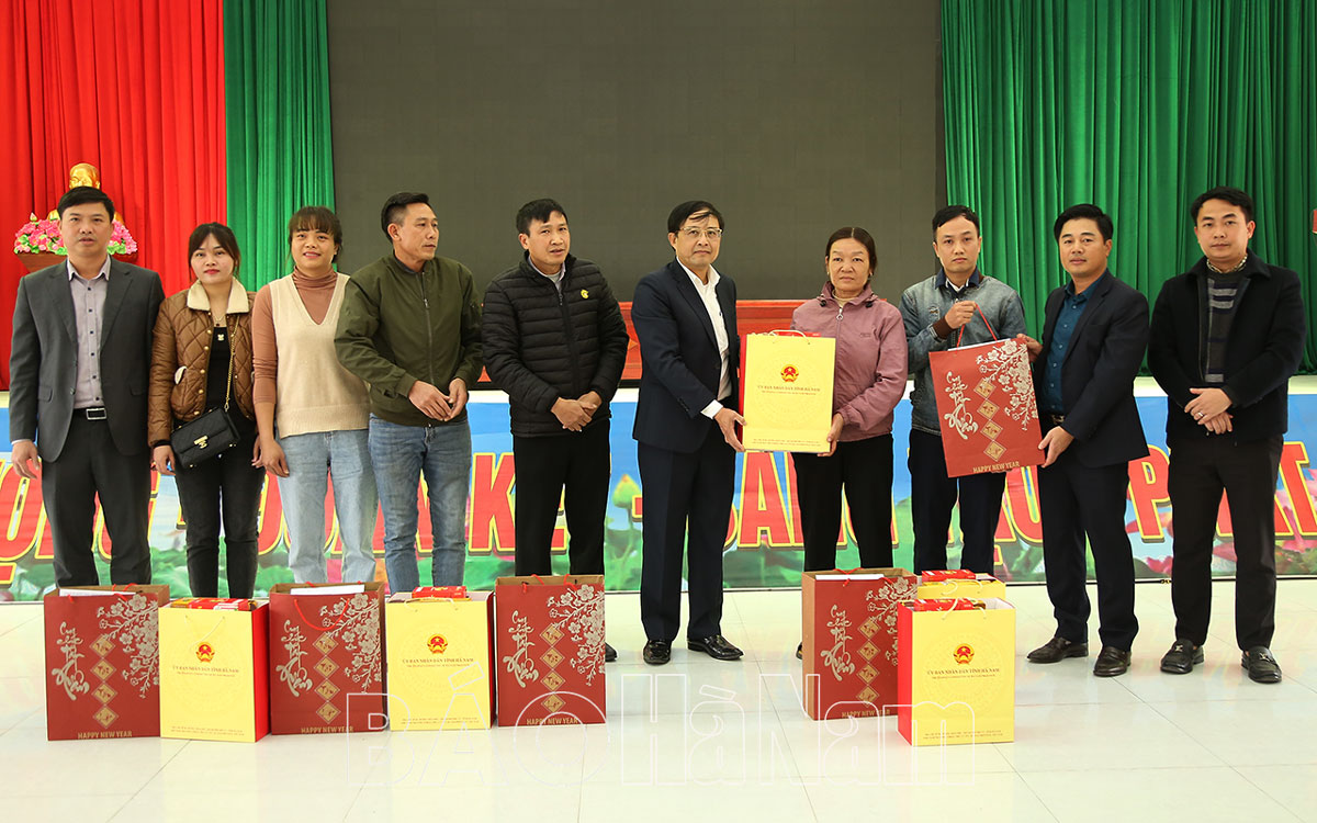 Đồng chí Nguyễn Đức Vượng, Tỉnh ủy viên, Phó Chủ tịch UBND tỉnh cùng lãnh đạo thành phố Phủ Lý thăm hỏi, tặng quà các hộ dân có nhà trong phạm vi sạt lở.