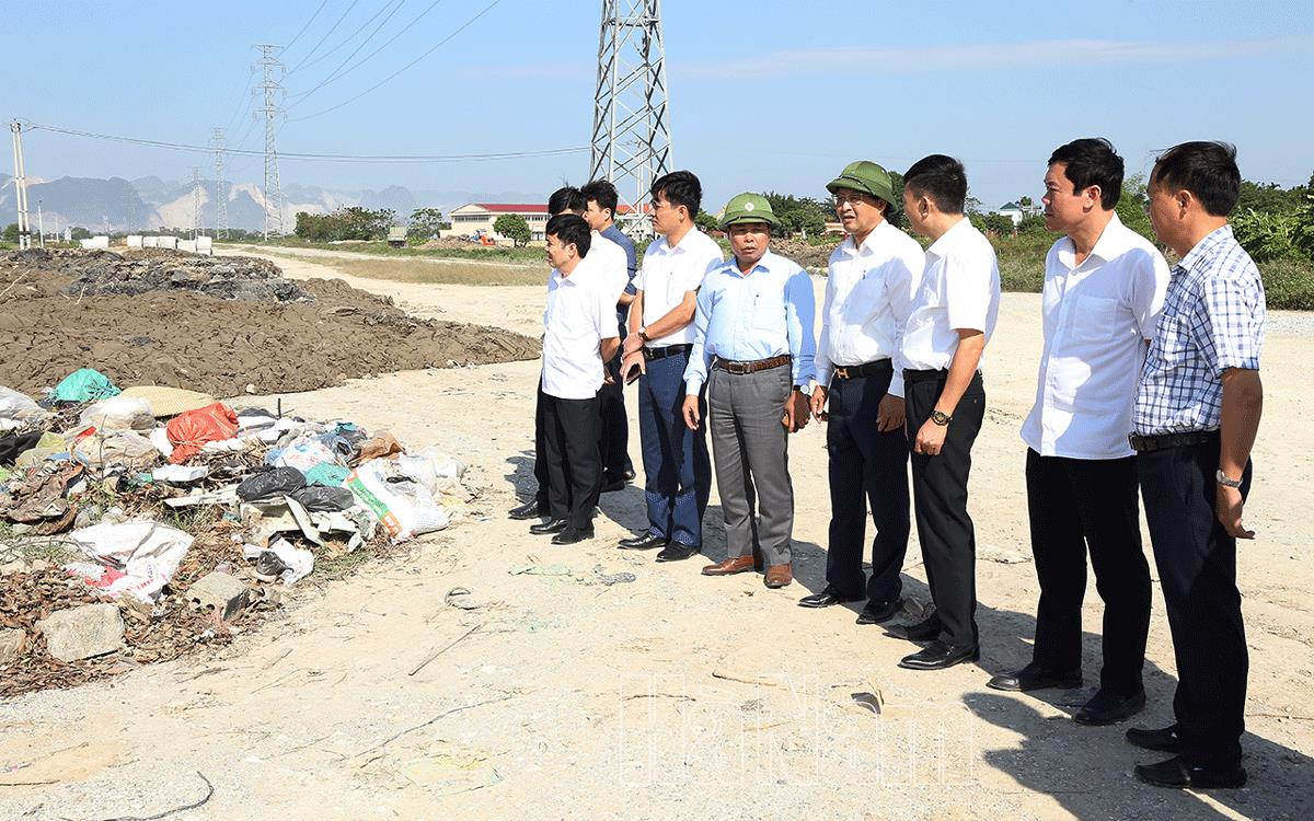 Đoàn kiểm tra khu bể trung chuyển rác thải tại xã NTM kiểu mẫu Thanh Tâm (Thanh Liêm).