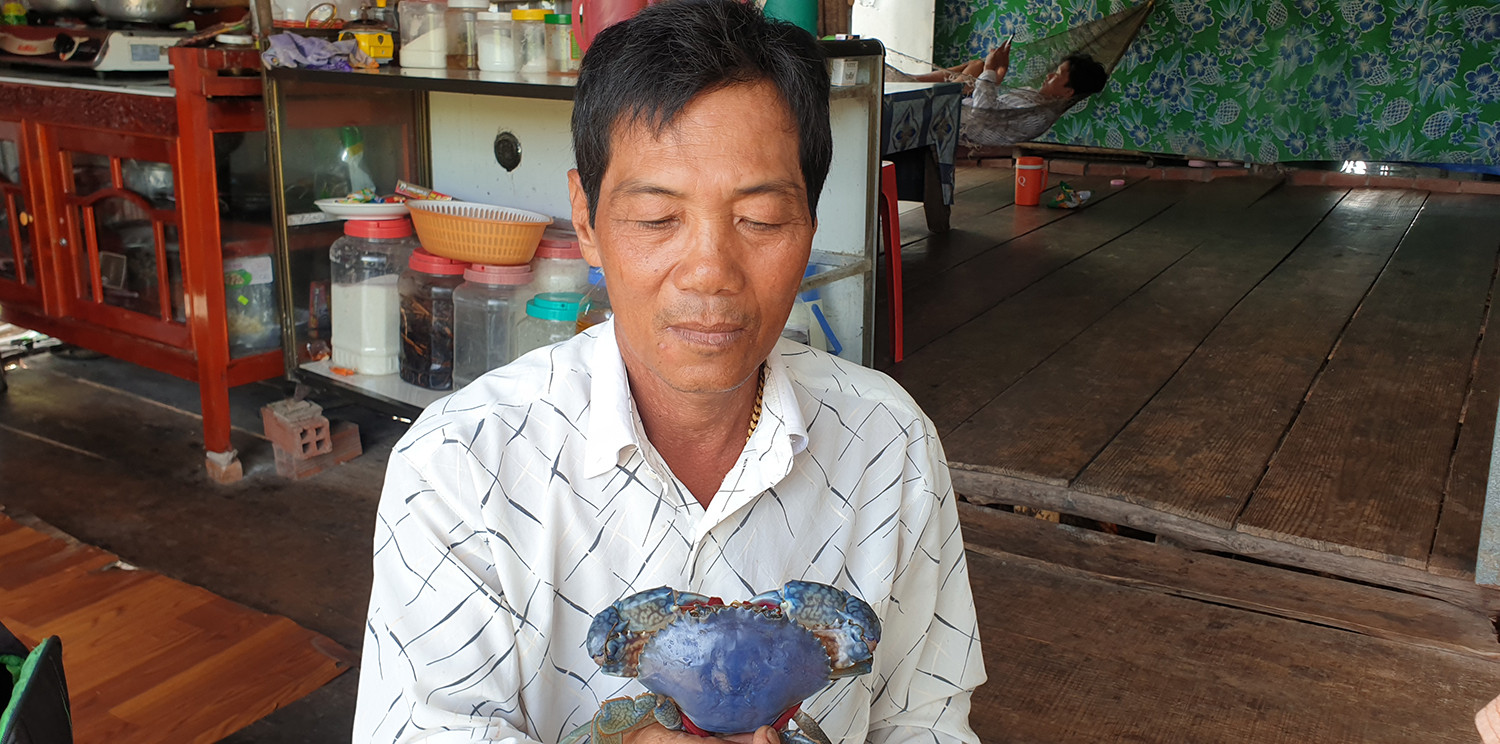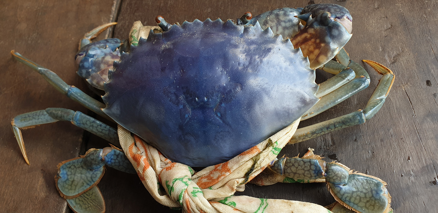 Cua màu xanh tím được ông Đức đặt lú dưới sông bẫy trúng.