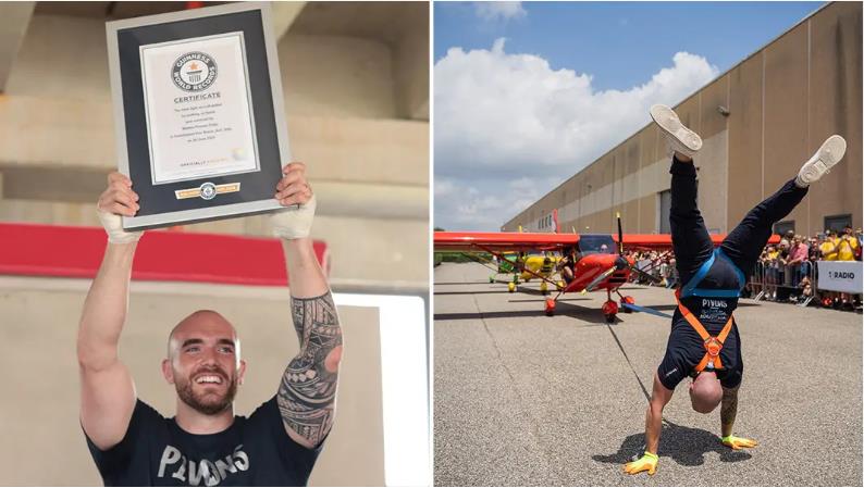 Truyền thông nước ngoài đưa tin, anh Matteo Pavone đã phá kỷ lục thế giới về dùng tay để kéo được nhiều nhất số máy bay hạng nhẹ di chuyển trong màn biểu diễn tại Castelnuovo Don Bosco, Asti, Italy.