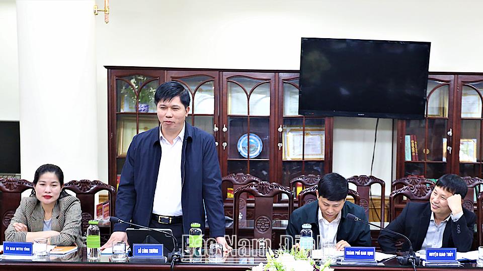 | Đồng chí Nguyễn Hải Dũng, TUV, Phó trưởng đoàn chuyên trách Đoàn đại biểu Quốc hội tỉnh phát biểu tại hội nghị. |