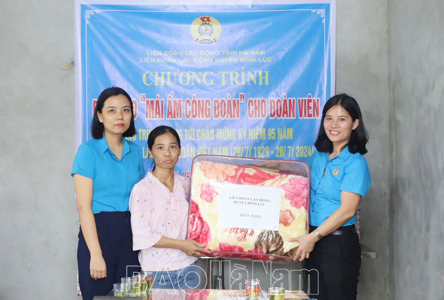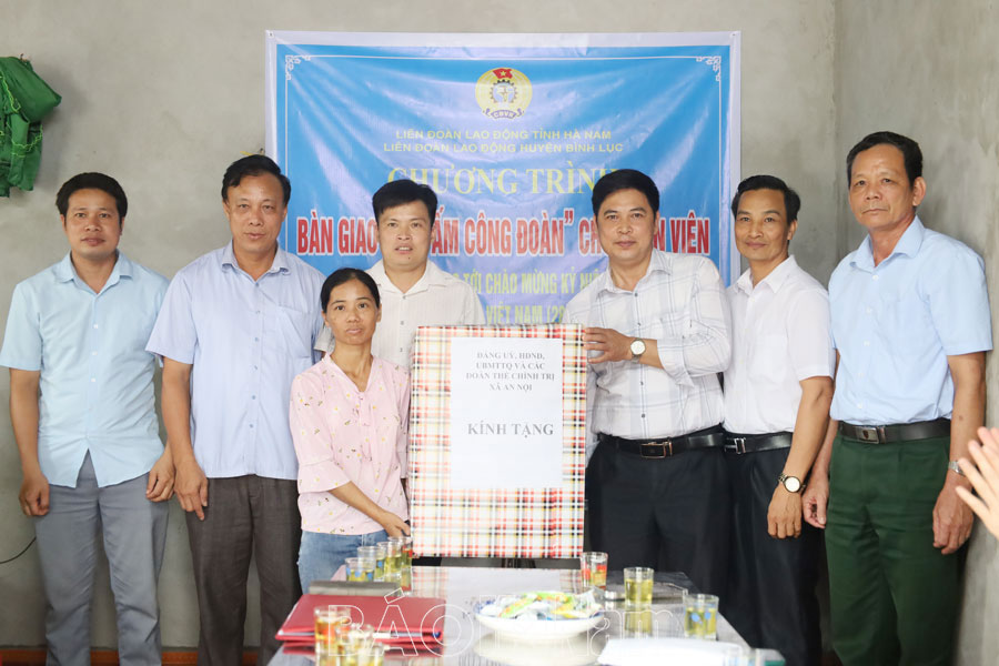 Thiết thực hưởng ứng Tháng Công nhân năm 2024 và hướng đến chào mừng Kỷ niệm 95 năm Ngày thành lập Công đoàn Việt Nam (28/7/1929 - 28/7/2024), sáng 21/5, Liên đoàn Lao động (LĐLĐ) huyện Bình Lục tổ chức bàn giao nhà "Mái ấm Công đoàn" cho đoàn viên có hoàn cảnh khó khăn Nguyễn Thị Thuận (xã An Nội, huyện Bình Lục), hiện là công nhân Công ty TNHH Giày Ngọc Hồng.