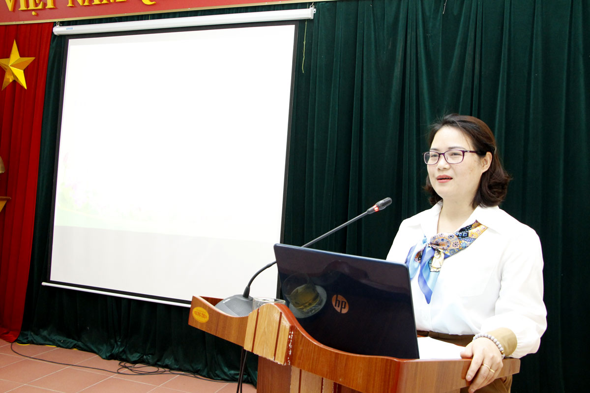 Giảng viên của Ban Tuyên giáo Tỉnh ủy truyền đạt các kiến thức về bảo vệ nền tảng tư tưởng của Đảng cho đội ngũ cán bộ công đoàn huyện Bình lục.