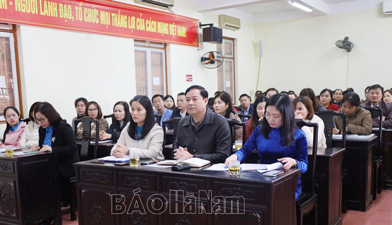 Lãnh đạo LĐLĐ huyện Bình Lục báo cáo kết quả thực hiện phong trào CNVCLĐ và hoạt động công đoàn năm 2023; phương hướng, nhiệm vụ năm 2024.Lãnh đạo LĐLĐ tỉnh phát biểu chỉ đạo tại hội nghị.