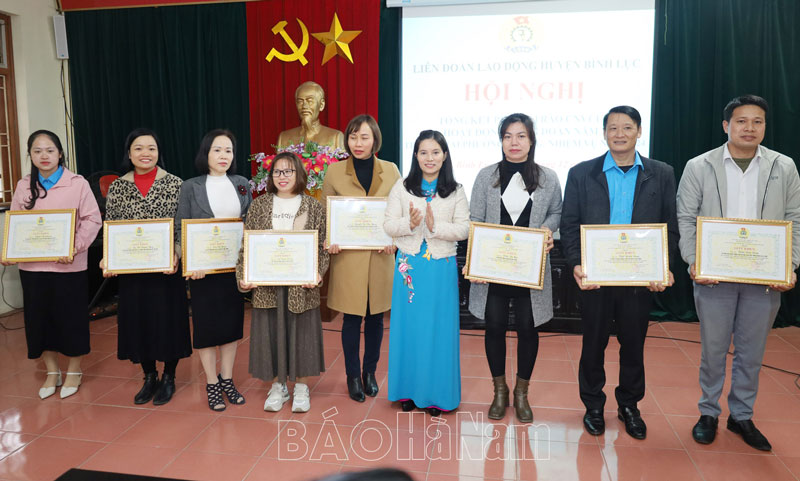 Bám sát sự chỉ đạo của LĐLĐ tỉnh và Huyện ủy Bình Lục, các cấp công đoàn trong huyện khắc phục khó khăn, có nhiều đổi mới về nội dung, hình thức hoạt động, thực hiện tốt chức năng nhiệm vụ của công đoàn là chăm lo, đại diện bảo vệ quyền và lợi ích chính đáng của đoàn viên, CNVCLĐ. LĐLĐ huyện hiện quản lý 112 công đoàn cơ sở với hơn 17 nghìn đoàn viên. Năm 2023, LĐLĐ huyện Bình Lục đã vận động thành lập 5 công đoàn cơ sở (CĐCS) trong các doanh nghiệp và phát triển thêm 2.128 đoàn viên; phối hợp tổ chức 13 lớp bồi dưỡng lý luận chính trị và nghiệp vụ nhằm nâng cao chất lượng đội ngũ cán bộ công đoàn cơ sở.