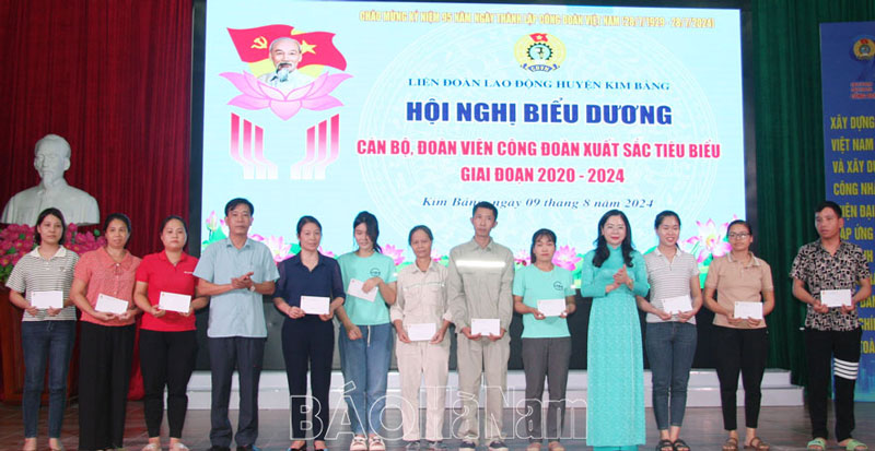Cũng tại hội nghị, LĐLĐ huyện đã biểu dương 30 cán bộ công đoàn tiêu biểu xuất sắc trong phong trào CNVCLĐ và hoạt động công đoàn. Đây là những nhân tố điển hình được lựa chọn, bình xét từ cấp cơ sở đến cấp huyện. Nhân dịp này, LĐLĐ huyện Kim Bảng cũng tặng 30 suất quà động viên công nhân lao động hoàn cảnh khó khăn.