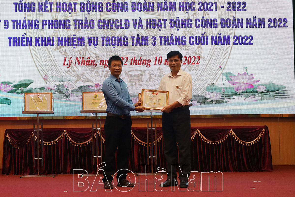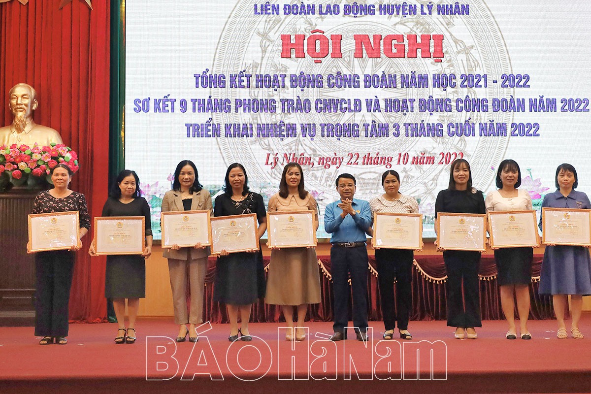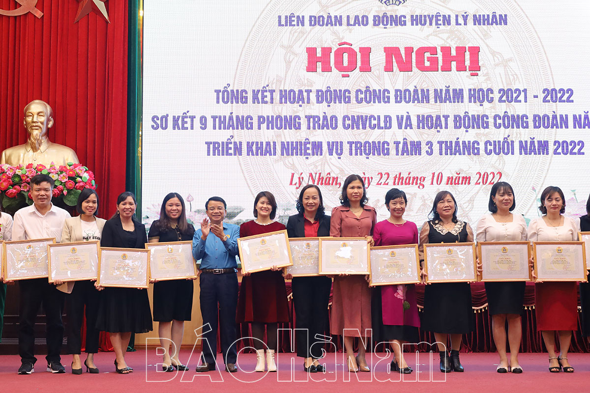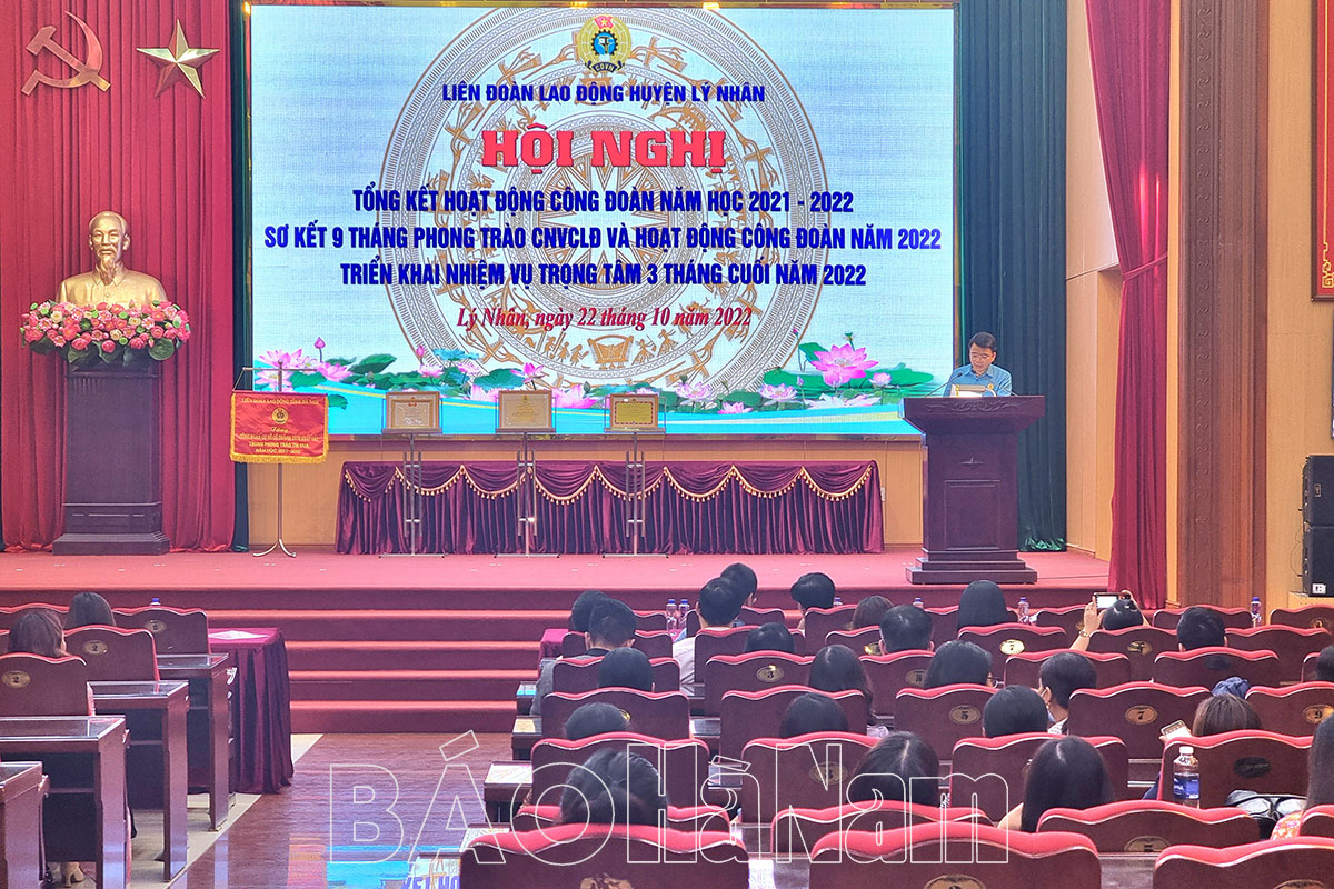 Chiều 22/10, Liên đoàn Lao động (LĐLĐ) huyện Lý Nhân tổ chức hội nghị tổng kết hoạt động công đoàn năm học 2021-2022.