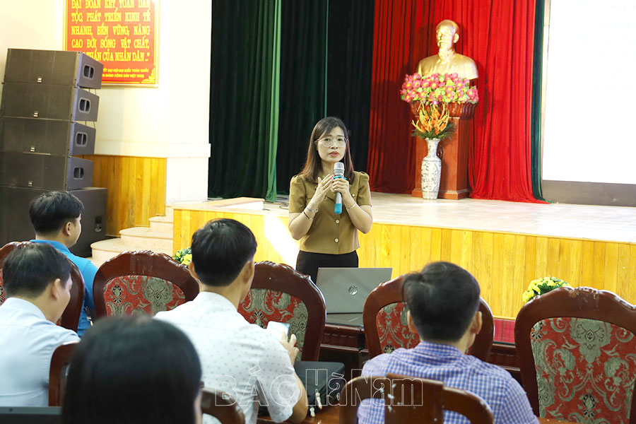 Báo cáo viên của LĐLĐ tỉnh phổ biến các nội dung về công tác tài chính, tài sản công đoàn cho cán bộ công đoàn cơ sở huyện Thanh Liêm.