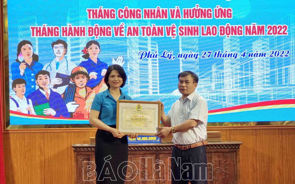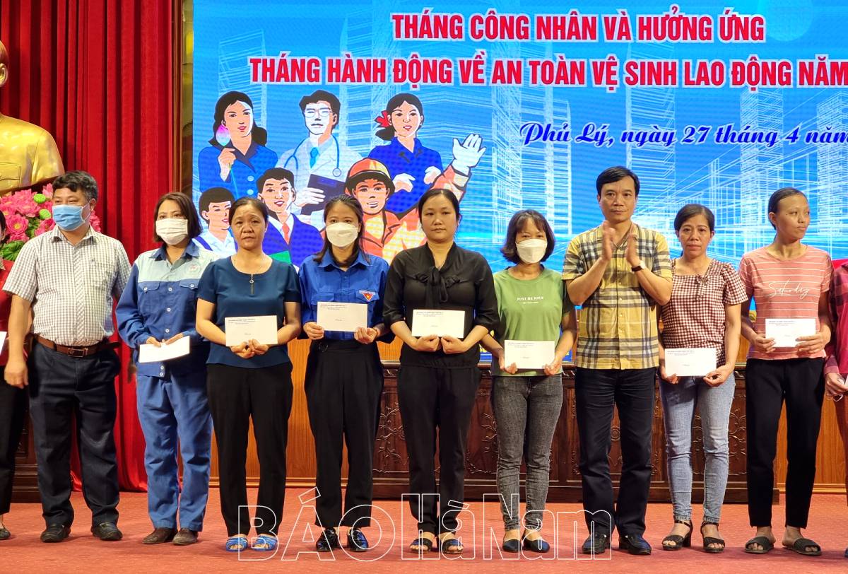 Cũng trong khuôn khổ chương trình Lễ phát động, LĐLĐ thành phố mời giảng viên Trường Trung cấp Kinh tế-Kỹ thuật Hà Nam tập huấn về ATVSLĐ cho các chủ tịch, phó chủ tịch công đoàn cơ sở trực thuộc.